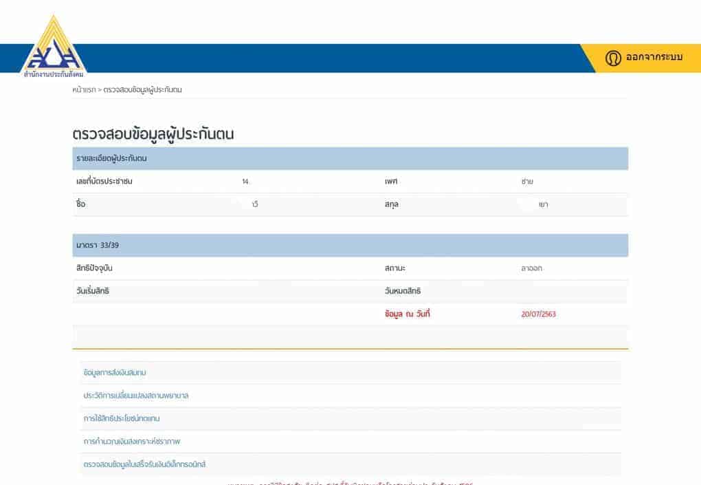 หน้าข้อมูลเบื้องต้นผู้ประกันตน