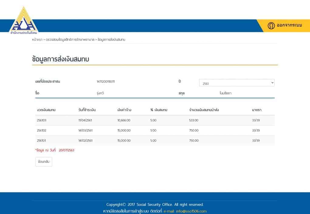 หน้ารายการเสดงเงินที่เราจ่ายสมทบประจำปี